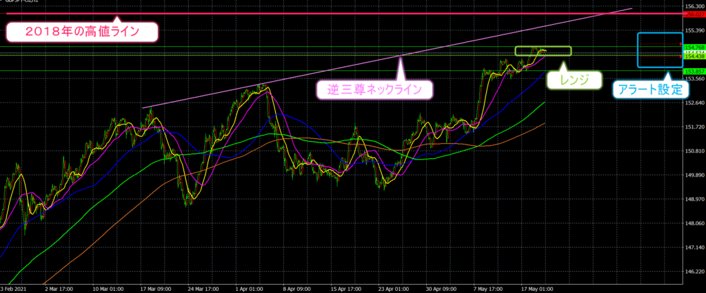 水平ラインから上昇した底からショート②ポジ目を持ってしまい