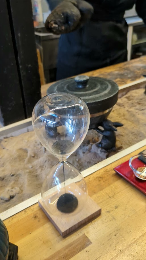 砂時計を使って茶葉を蒸す時間をはかりました⏳