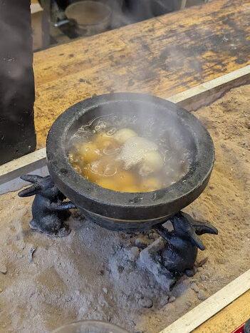 網焼き団子の後は 鍋が運ばれてきました 五徳がうさぎで可愛い🐰