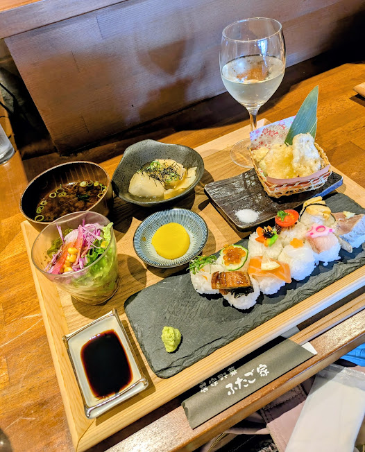 鴨川沿いのお店 手毬寿司が繊細で可愛い ワインと一緒に楽しみました🍷