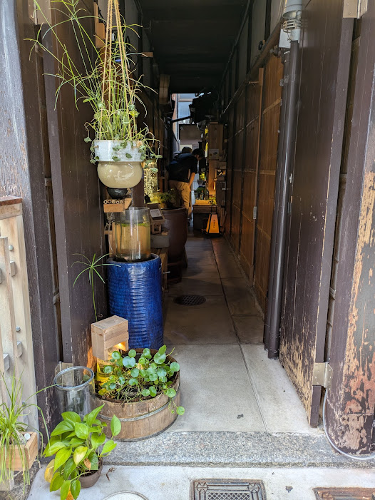 先斗町でランチの後、建仁寺に行く途中で見つけた路地水族館 細長い路地を奥に進んで行くと水槽に水草と一緒にお魚いてました🐠🐠🐠 鰻の寝床 京都らしい~